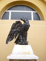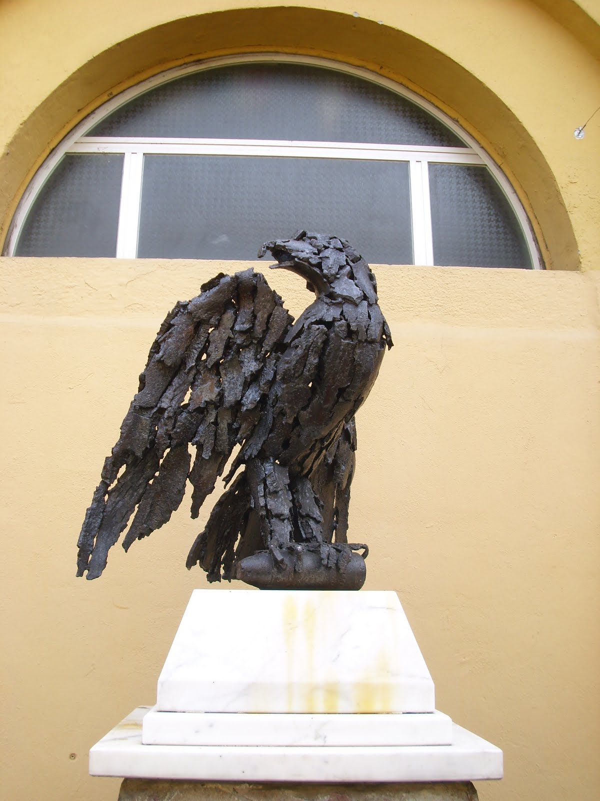 Iniziamo la pubblicazione di alcuni articoli con i quali intendiamo presentare i tanti cimeli che adornano la nostra sede e costituiscono dei piccoli e grandi pezzi di storia di uomini, di alpini e della Patria. Nello spazio scoperto dinnazi l'ingresso della sala, all'interno dell'edificio che ospita le associazioni d'arma, si trova una scultura che rappresenta un'aquila. La particolarità dell'opera d'arte è che è stata realizzata con dei frammenti di reperti bellici del primo conflitto mondiale. La scultura è stata donata alla sezione ANA della Spezia dal gruppo alpini di Cesuna Asiago il 4 ottobre 1987. L'autore dell'opera d'arte è l'alpino Giovanni Spiller.