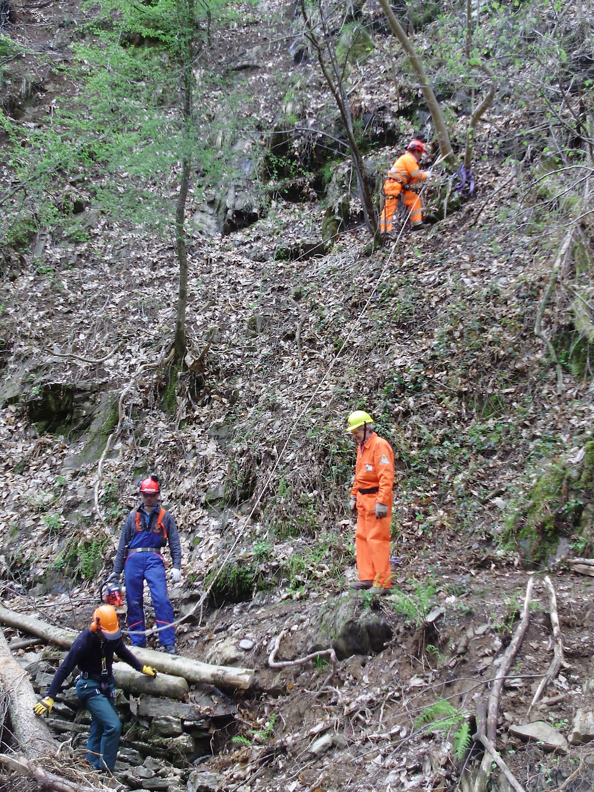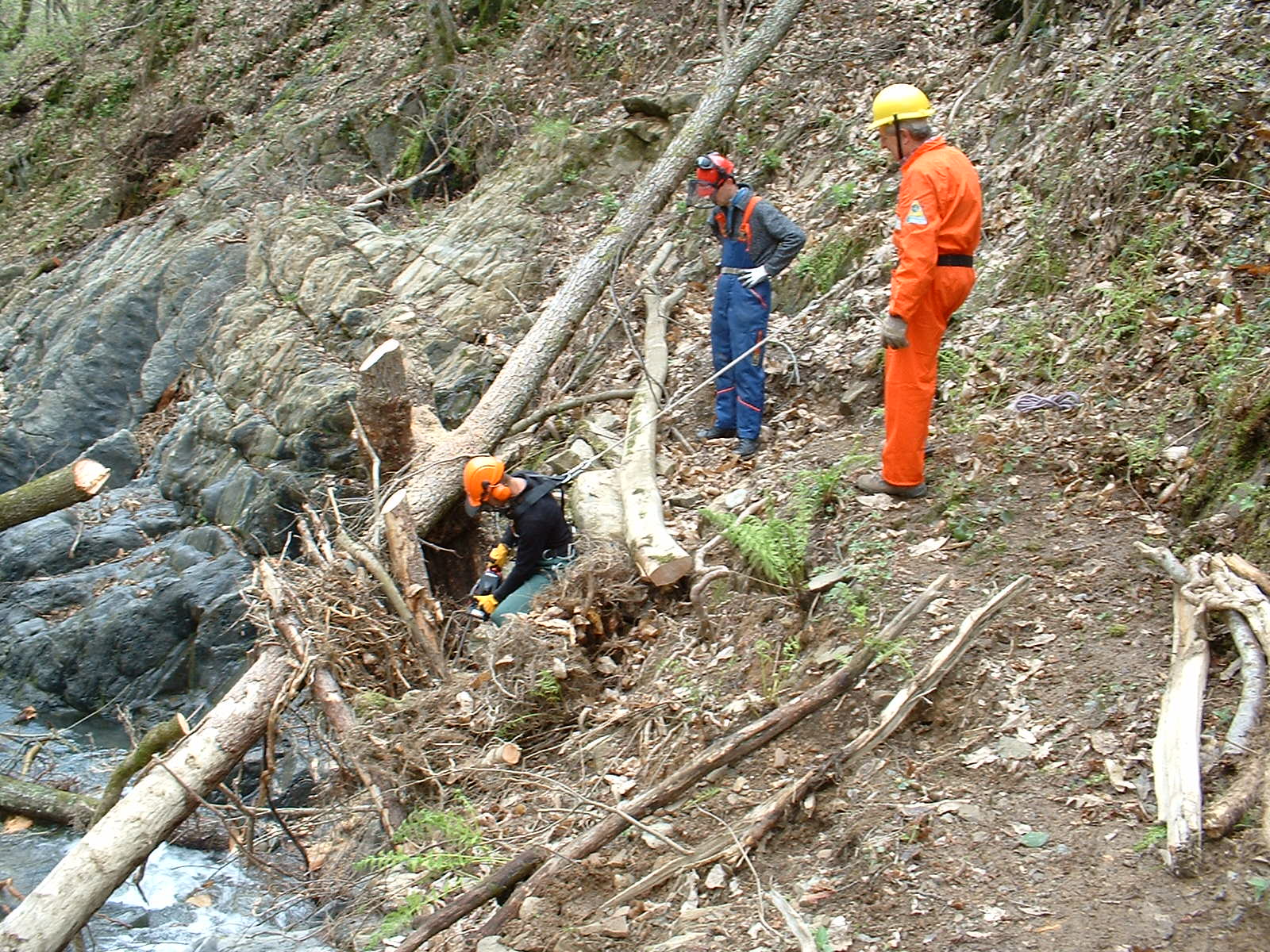 Grande attività nei cantieri di lavoro avviati dall’Ana per il recupero di beni ambientali e architettonici presenti nel Comune di Pignone (SP). I lavori hanno interessato in particolare l’itinerario che si snoda lungo il torrente Casale a partire dalla loc. Pastine di Casale fino alla loc. S. Bernardo, per uno sviluppo complessivo del sentiero di circa 6.800 metri: il tratto di percorso ripristinato è di circa 3 Km. A causa della piena del torrente Casale del 25 ottobre scorso danni ingenti hanno colpito la zona dove hanno operato i volontari della Protezione Civile degli alpini. Numerose frane e la presenza di tantissime piante cadute, comprese le ceppaie, con centinaia di tronchi finiti nel sentiero e nell’alveo del torrente. I danni più significativi sono stati apportati dall'erosione da parte del torrente di interi tratti di camminamento, cosa che ha provocato una situazione di grave pericolosità per gli utenti del territorio.
