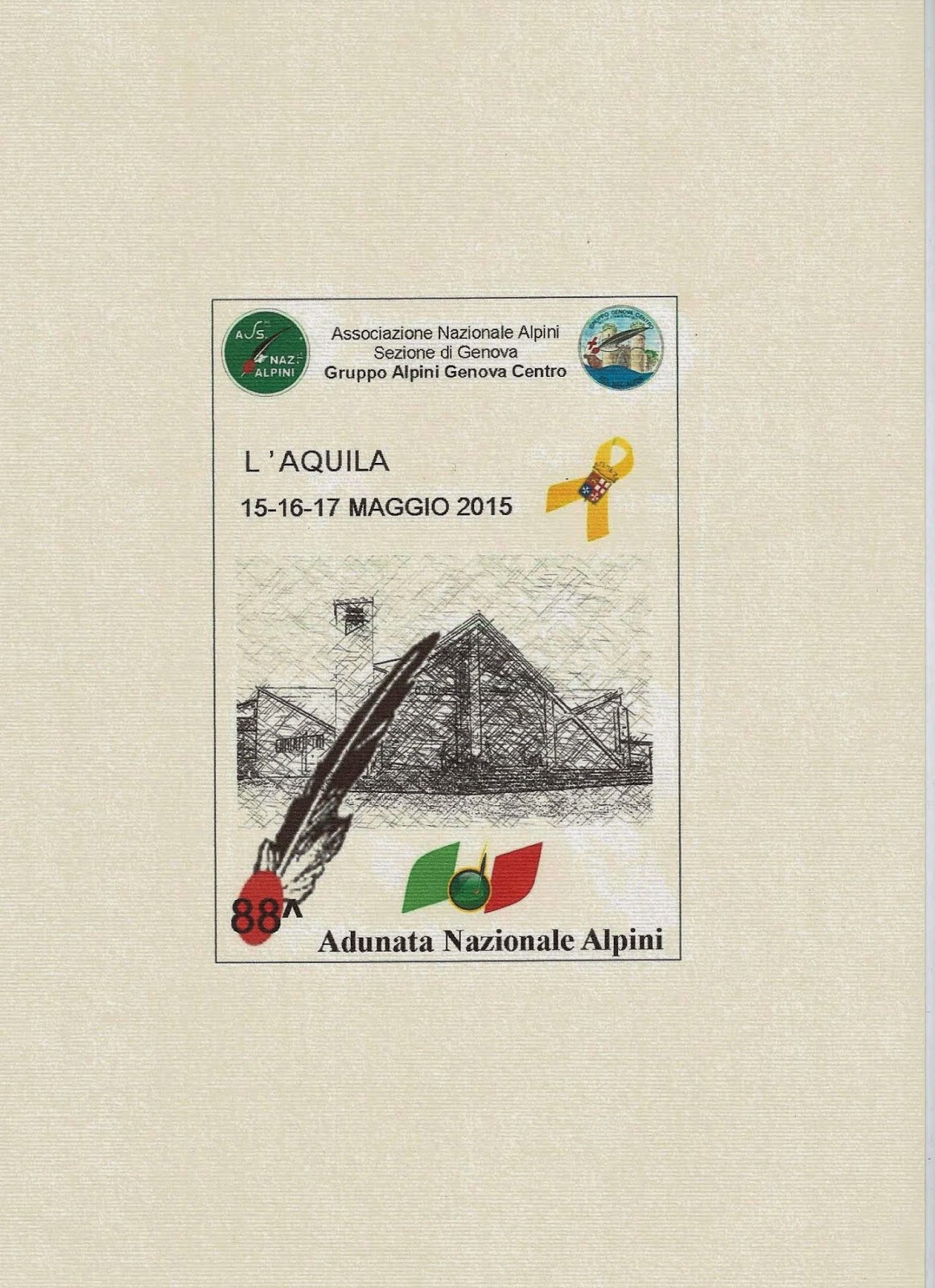 In stampa la cartolina celebrativa dell'adunata 2015 realizzata dal Gruppo Genova Centro della sezione genovese dell'ANA. Grazie alla cortesia dell'amico Giampaolo Olivari siamo in grado di anticiparvi la nuova cartolina, che segue le altre realizzate negli anni precedenti, tutte molto significative nei contenuti e ben realizzate dal punto di vista grafico e cromatico.